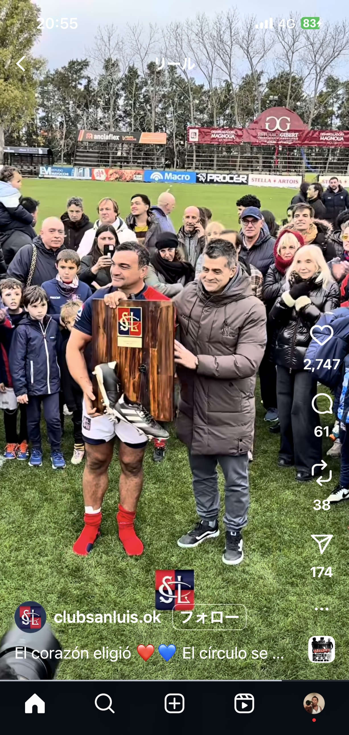 プーマス元主将、アグスティン・クレービーも、自身が育ったクラブ・サン・ルイスで引退試合を迎えた。同クラブの公式Instagramより