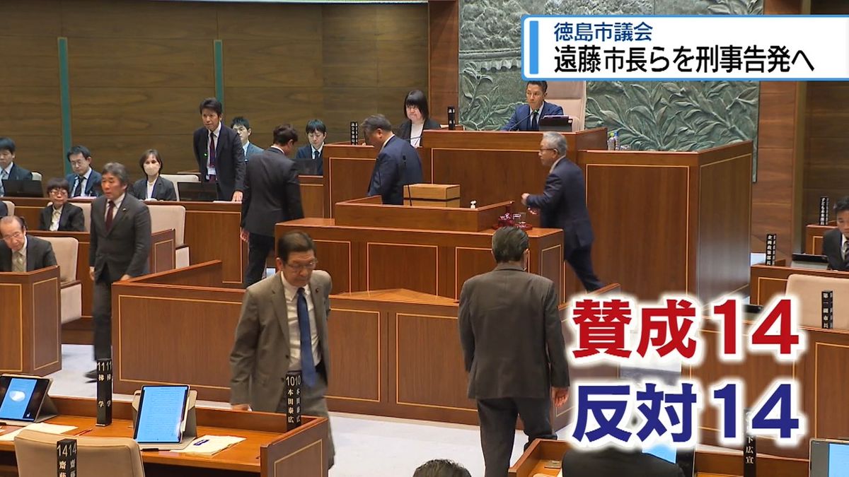 そして出席議員28人による投票結果は、14対14の同数。