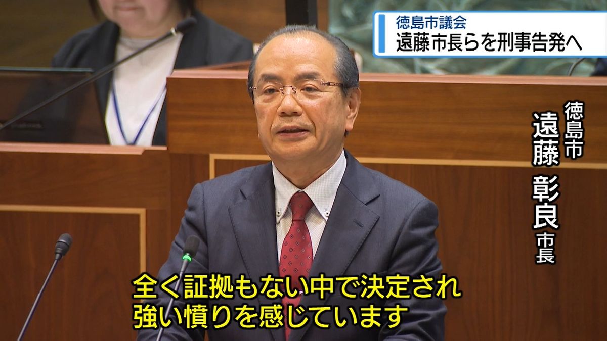 「市長である私と都築政務監の刑事告発が可決されましたことには、全く証拠もない中で決定され、強い憤りを感じています」