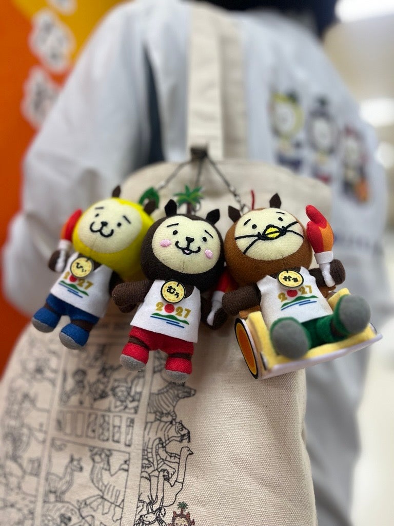今回発売するのは、開催年「2027」をデザインしたランニングシャツを着た「ひぃくん」「むぅちゃん」「かぁくん」の3種類。国スポ・障スポを掲げたデザインや、車いすに乗った「かぁくん」など、本大会ならではの特別仕様となっています。