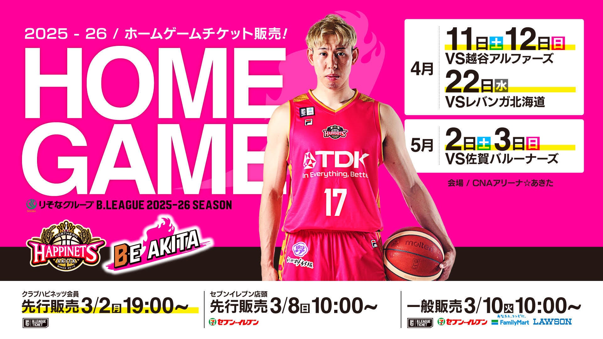 ご家族・ご友人をお誘いあわせの上、春休みはCNAアリーナ☆あきたへお越しください♪