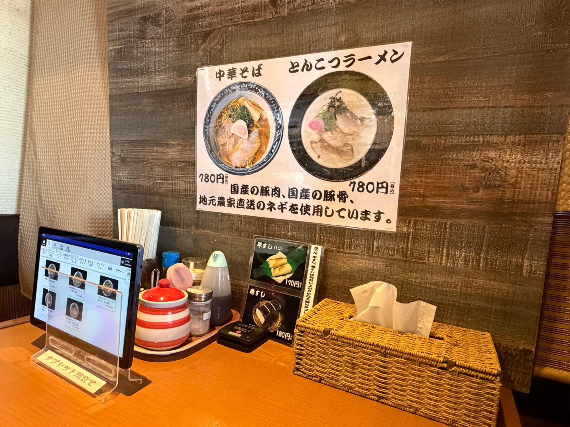 店内は落ち着いた雰囲気で、俗に和歌山ラーメンとして親しまれるこの界隈の中華そば店の中では、おしゃれな部類に入るのではないだろうか。ゆったりと食事を楽しめる、居心地のいい空間だった。