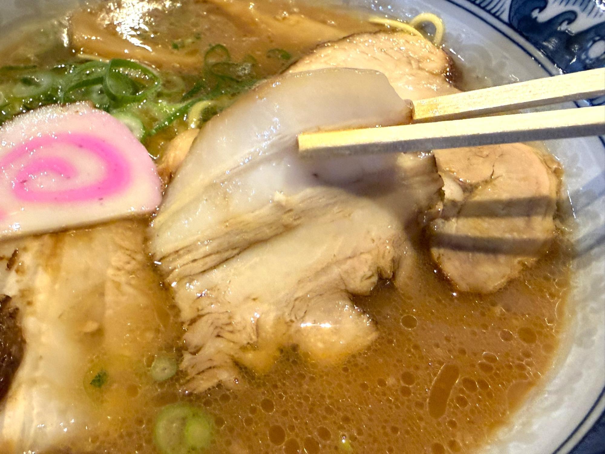 九州産の豚バラ肉を使ったチャーシューは口当たりがよく、とても柔らかい。肉の旨みもしっかり感じられ、脂身とのバランスもいい。