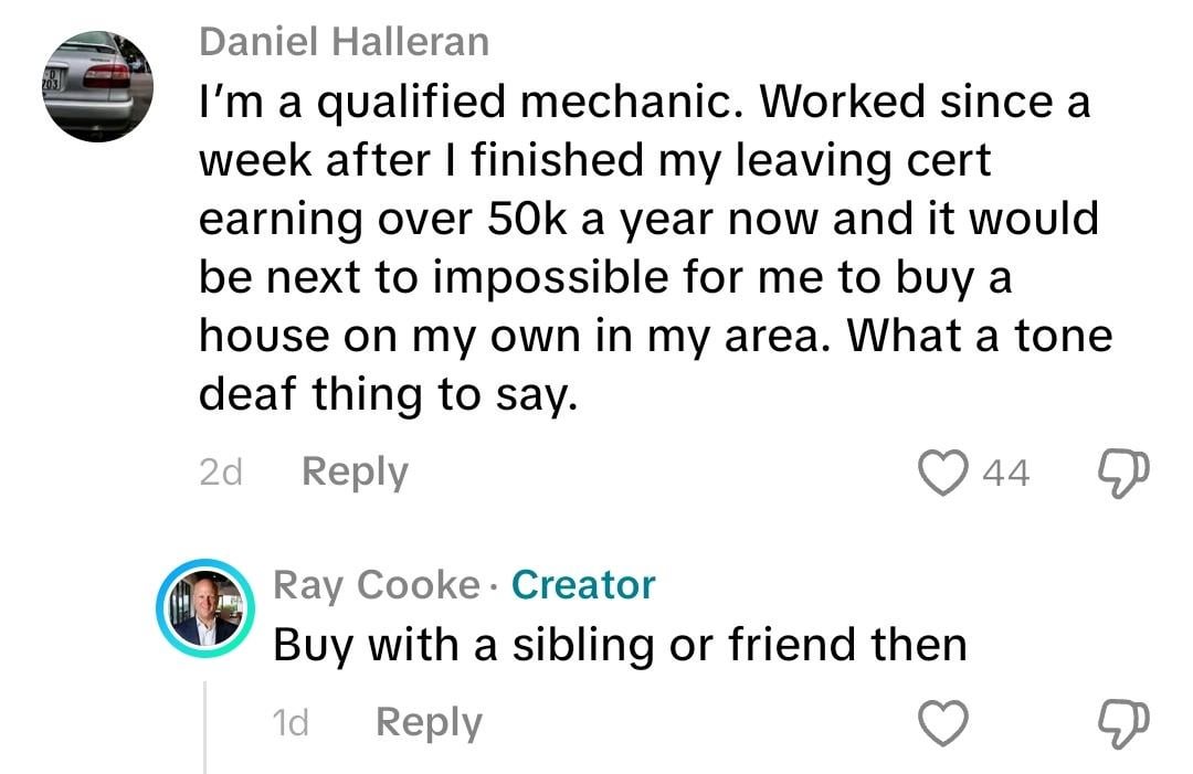 Twitter Pinterest Facebook Tumblr LinkedIn Bluesky Reddit Threads 正直なところ、政治家も地主階級も、農民に対する漫画のような極悪人の態度に向かって進んでいるように見えます。これはヴァラカーが人々にこう言っているということでしょうか? "親から借金してもらう" 住宅危機について話すときは? Ireland