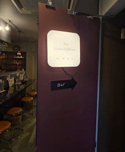 「紺屋カレー」から扉を開け、細い通路を進むと「Bar Cocktail&Heart」へと繋がっています。