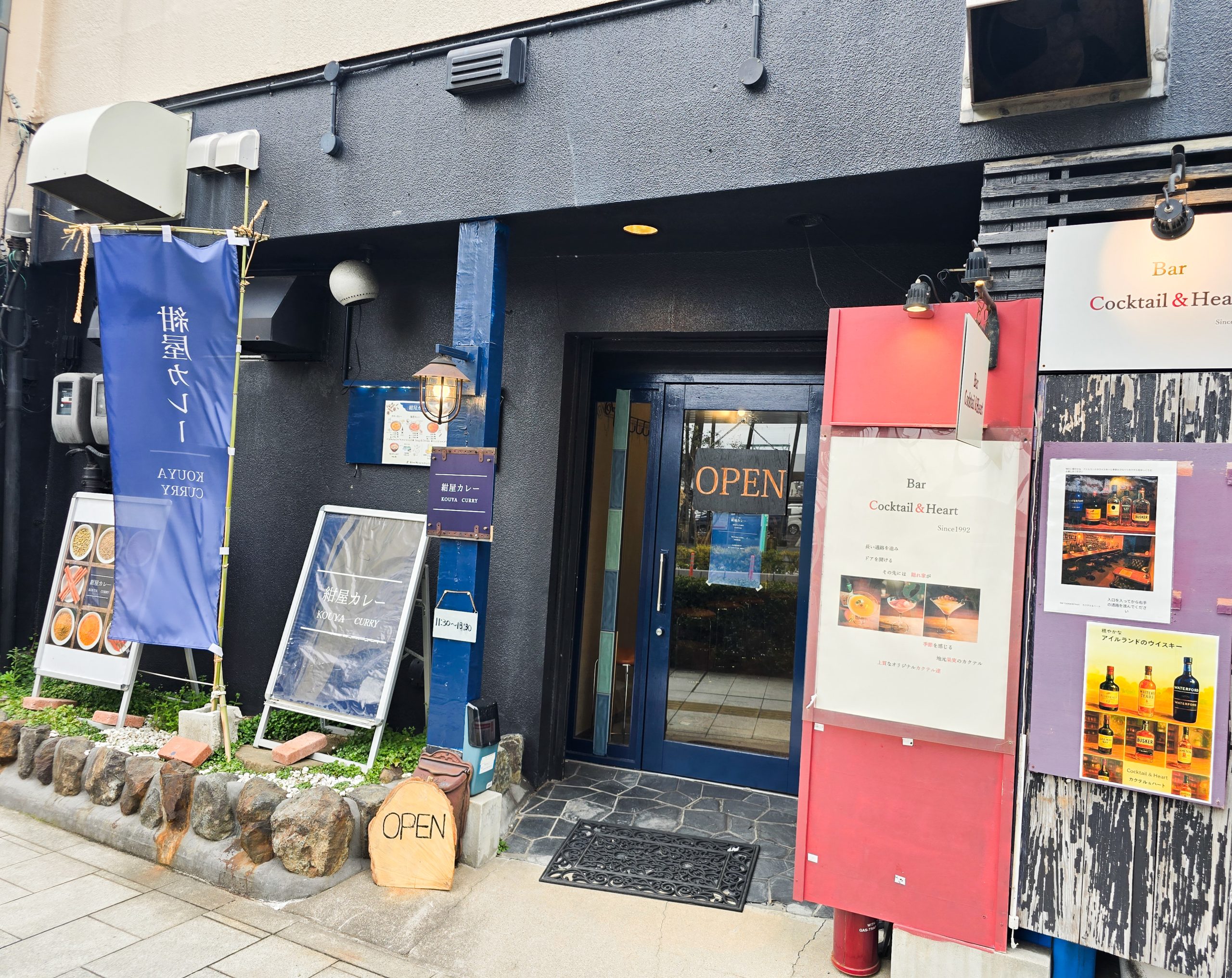 昼は「紺屋カレー」、夜は「Bar Cocktail&Heart」。