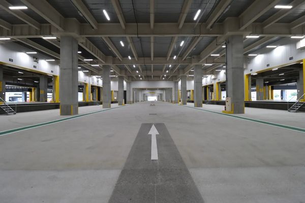 延床面積は約18万3000㎡(約5万5400坪)、地上6階建ての施設で、1階はトラックターミナル、2~6階は配送センターとして運用する。