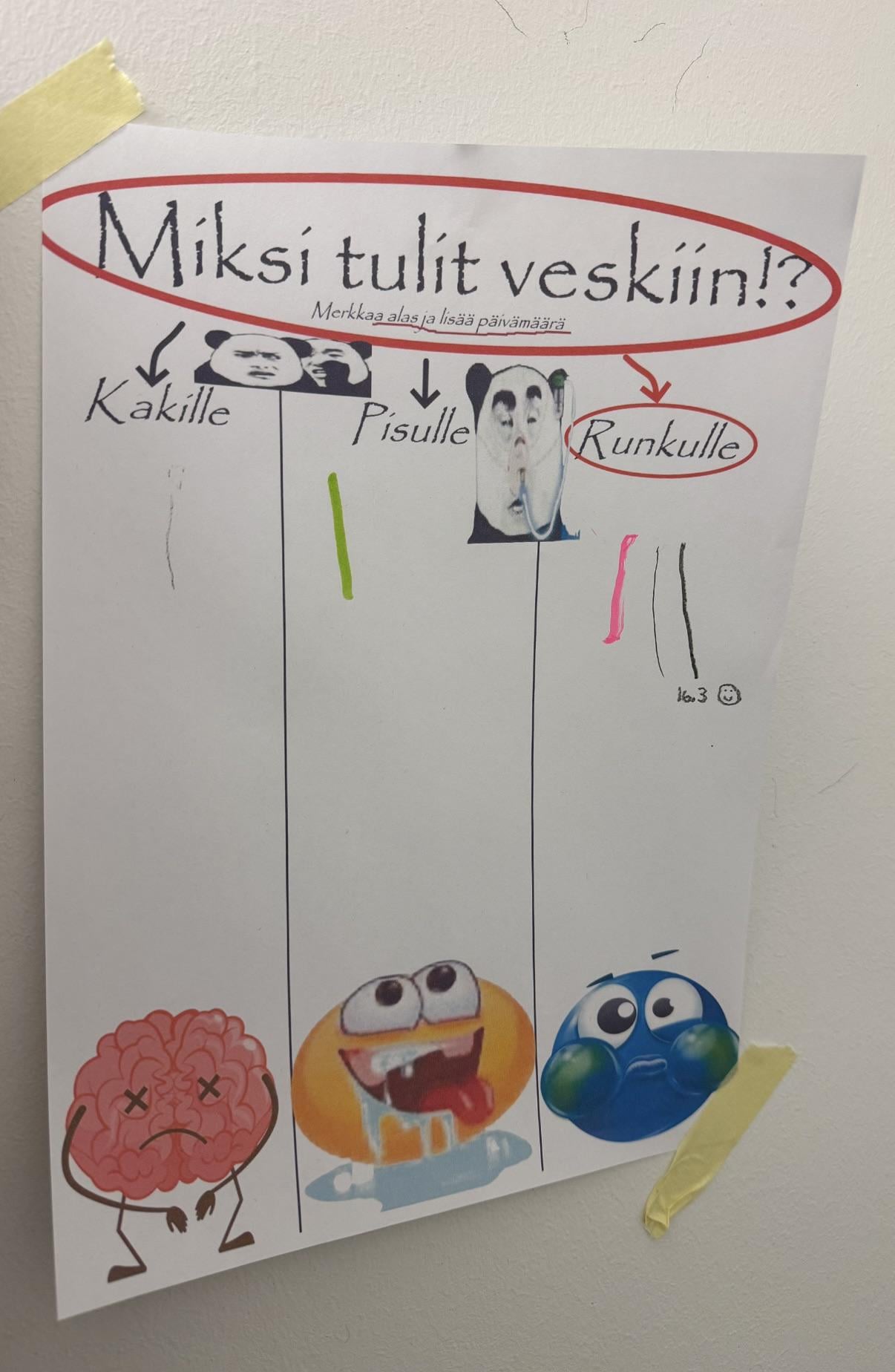 私は夜のフィンランド語クラスに参加しています。先週の休み中にトイレに行ったらこのポスターを見ました。最初の 2 つの単語の意味は知っていましたが、「Runkulle」が何を意味するのかは知りませんでした。そこで、この写真を撮り、Google レンズを使って翻訳してみました。 Googleはそれを「トランク用」と翻訳しましたが、意味がわかりません。それから私はクラスに戻り、先生に「トイレになぜトイレに来たのかというポスターが貼ってあった」と話しました。彼女は笑って、何が入っているのか私に尋ねたので、私はそれを完全に理解していないと言って、携帯電話を見ました。それから彼女は私に写真を撮ったか尋ねました。私はそう答えて、これを彼女に見せました。彼女の顔はすぐに変わり、愕然としたように見えました。何かが間違っていることはわかっていました。それから彼女は何事もなかったかのようにそれを無視して授業を続けました。家に帰ってChatGPTでその言葉の意味を聞いてみました。即座に後悔😭。今では恥ずかしいです。