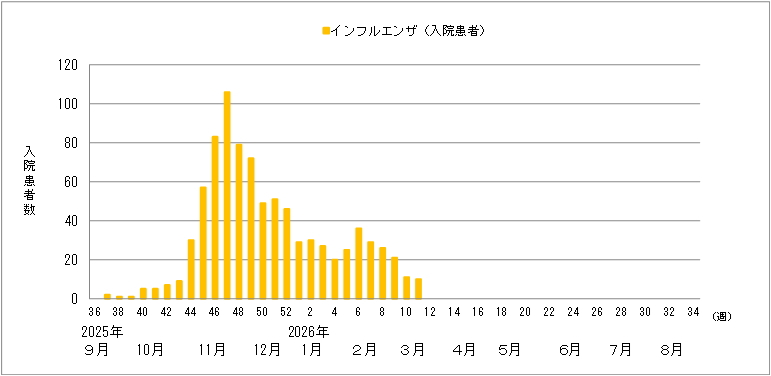 神奈川県の第11週(2026年3月9日~3月15日)のインフルエンザの定点当たり報告数は11.26でした。第5週に今シーズン2回目の警報発令があり、流行が継続しています。感染予防と感染拡大の防止のため、こまめに手を洗い、咳が出るときはマスクをするなどの咳エチケットを心がけましょう。また、体調不良のときは無理せず身体を休めましょう。
