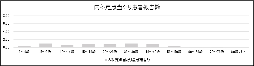 内科定点医療機関からの報告は、5~9歳及び30~39歳が最多でした。