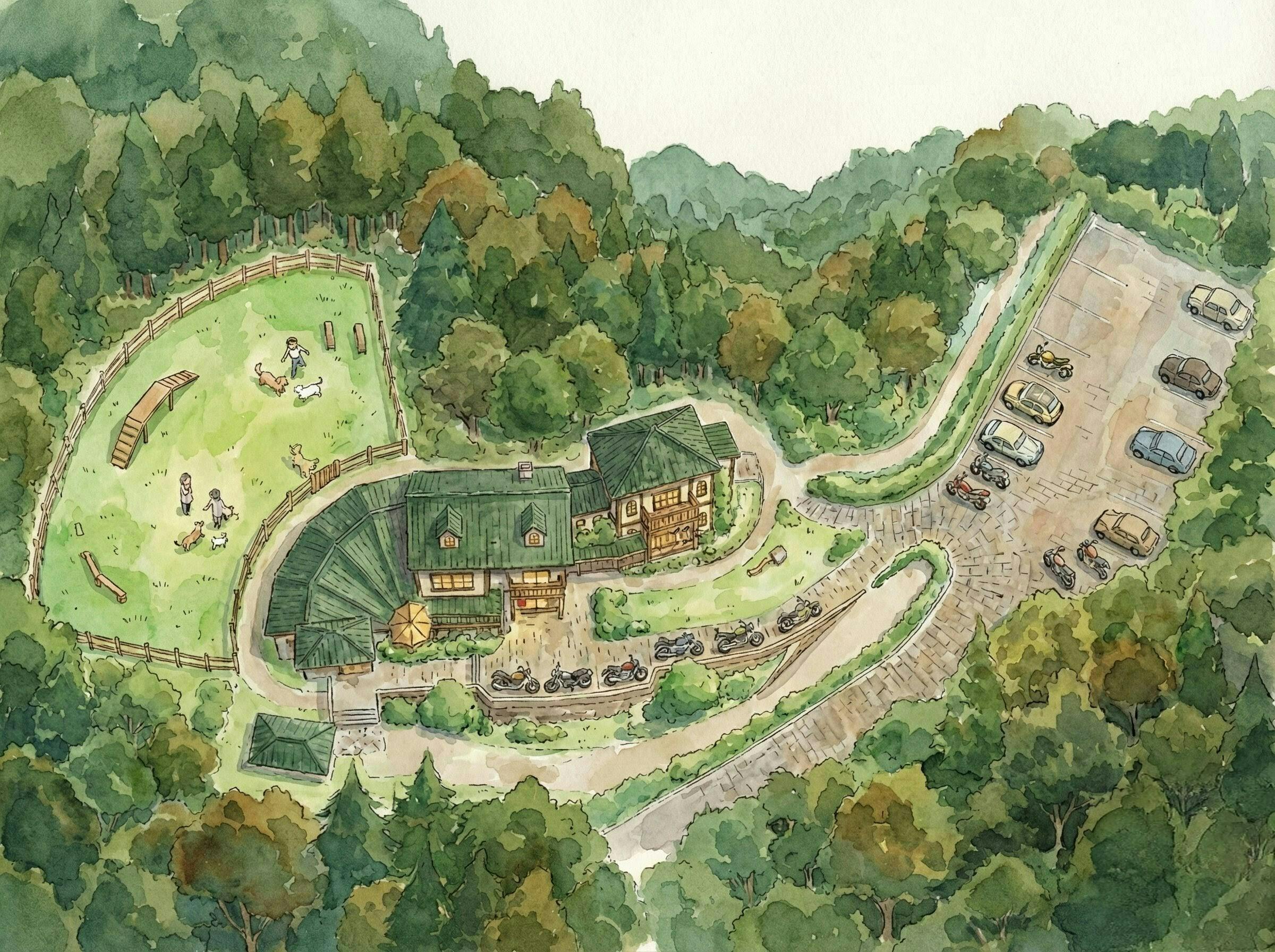 私たちが作ろうとしているのは、単なる通過点としての休憩施設ではありません。 バイクを愛する人と、犬を愛する人、そして地域の人々が自然と交わり、新たな文化が生まれる拠点です。