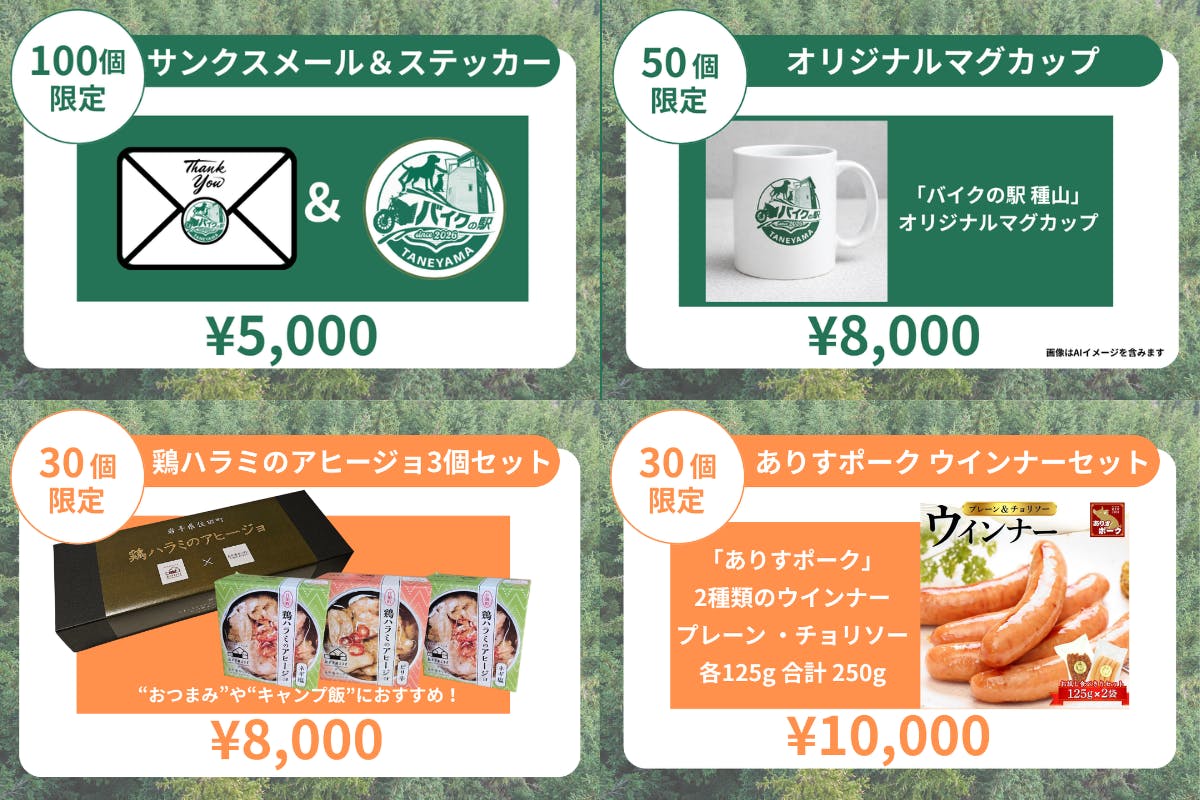 是非、〝バイクの駅 種山〟の実現と成長に向けて皆様の応援をよろしくお願い致します。