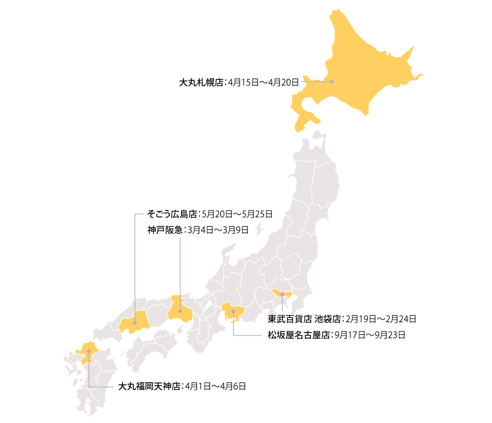 バウムクーヘン博覧会限定でお届けする「シャリシャリマシマシ」にくわえ、北海道や広島など各会場ごとの限定商品もご用意しています。