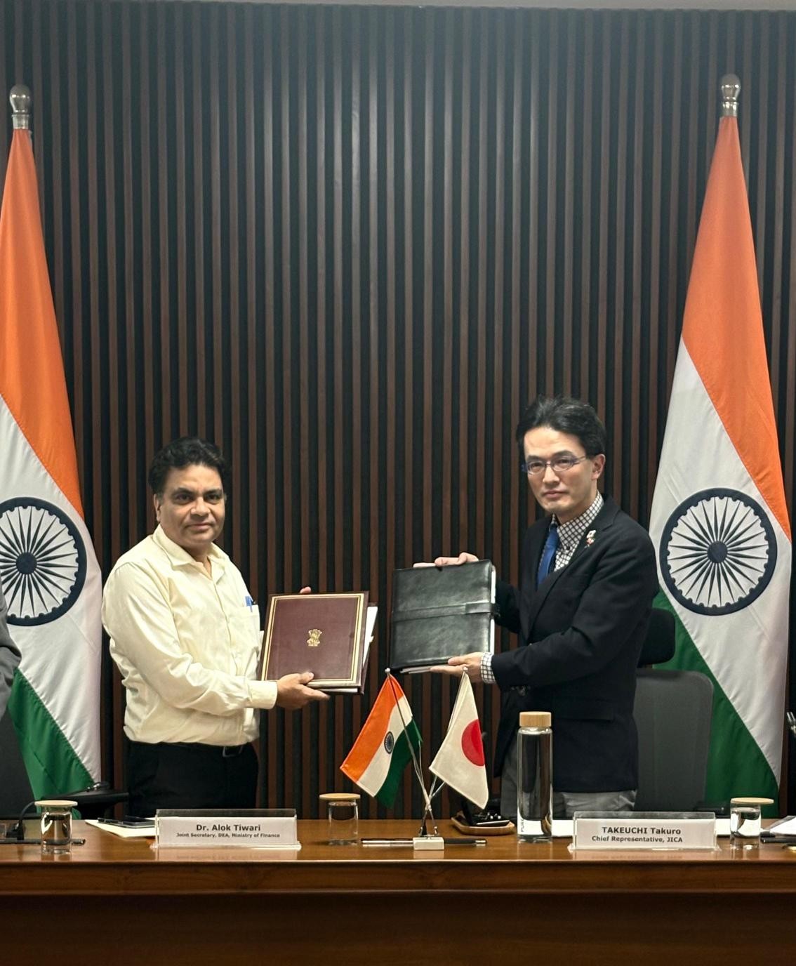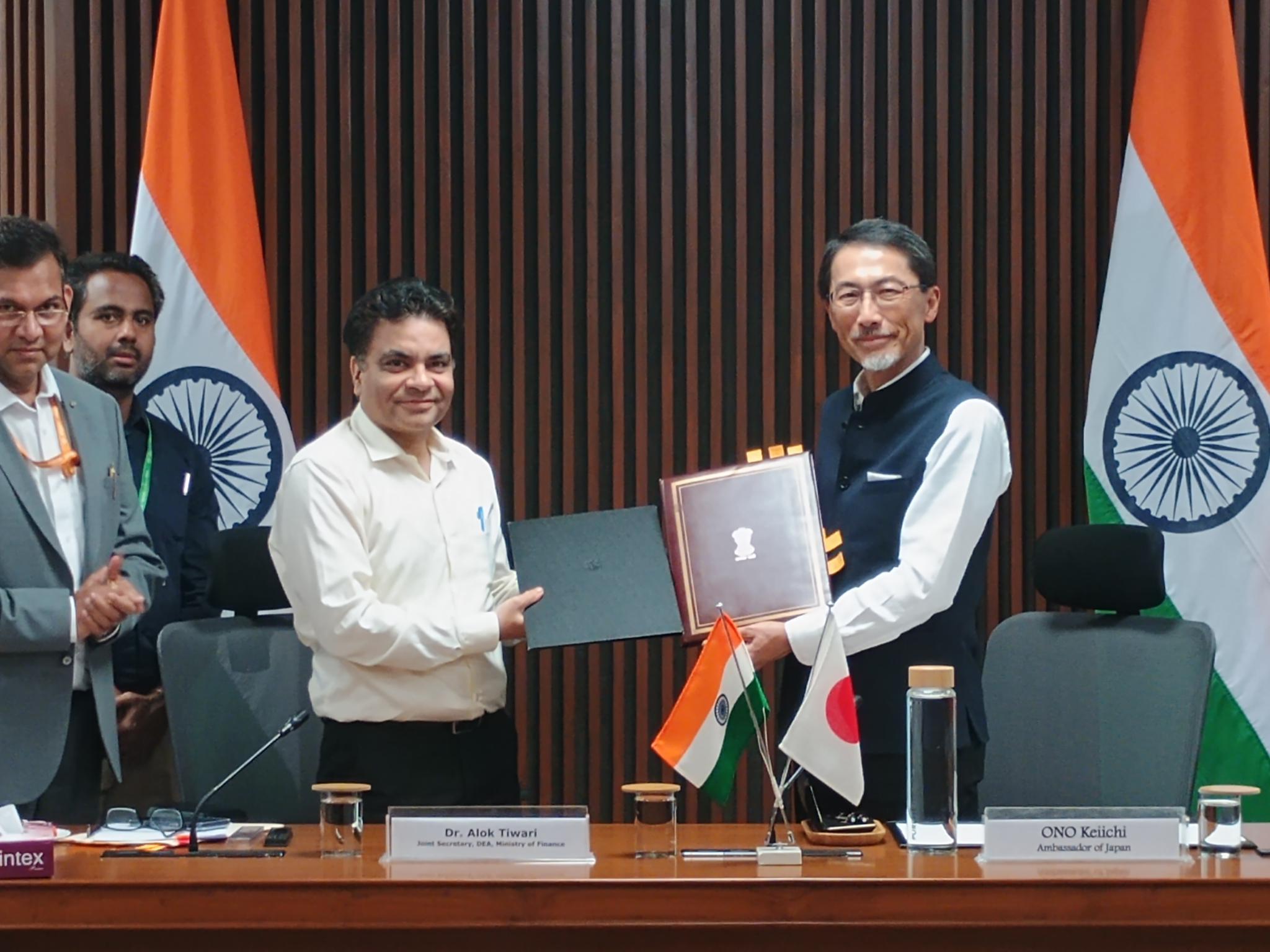 国際協力機構(JICA)は、3月24日、インド共和国の首都ニューデリー市にて、同国政府との間で、4事業を対象として、円借款貸付契約(Loan Agreement: L/A)に調印しました。当日の署名は、インド政府 財務省 経済局のアロック・ティワリ局長と、JICAインド事務所の竹内卓朗所長の間で取り交わされました。