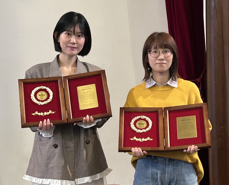 大学院理工学府知能機械創製理工学教育プログラム博士前期課程2年の戸崎杏珠さんと橋爪琳さんが、溶接学会奨学賞を受賞しました