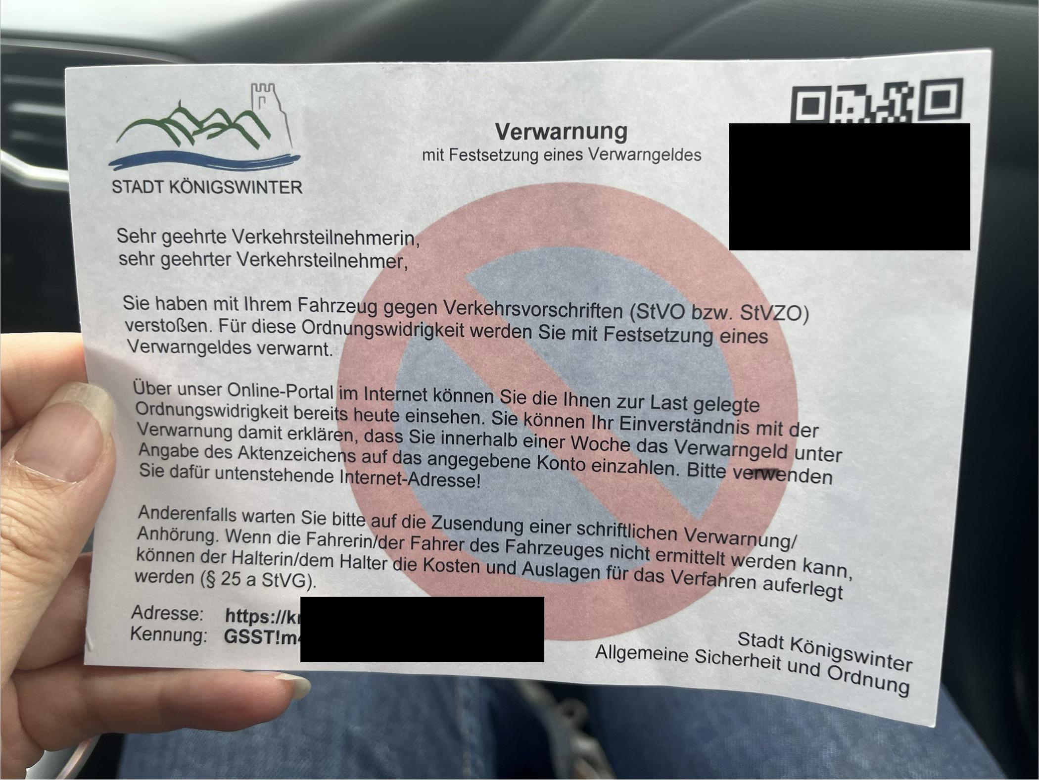 他の標識がなかったので、無料だと思って一晩中たくさん駐車しました。明らかに私たちが間違っていました。 英語に訳すと罰金を伴う警告だそうです。 「罰金」はオプションのように聞こえます。 それで…これは警告ですか、それとも切符ですか? – 編集: わかりました、ありがとう。これは払ってもらいます。なぜ彼らが私に何かについて警告するのかはわかりませんが。彼らは私に罰金を課したと言っているだけです。すでに罰金が科せられているのに、なぜ警告するのでしょうか? Germany