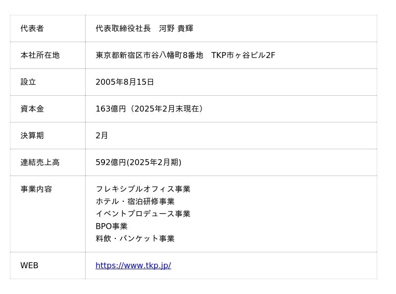 【株式会社ティーケーピー 会社概要】