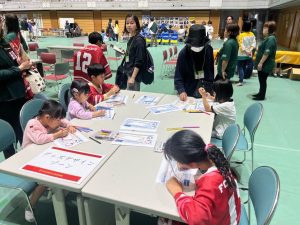当日は全体で1,200名を超える親子が来場され、FC琉球ブースにも途切れることなく多くの方々に足を運んでいただきました。実際にクラブのシゴトを体験するこどもたちの真剣な眼差しや笑顔が印象的な1日となりました。