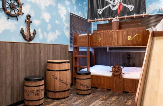 遊べる宿として、冒険者気分を満喫できるお部屋もあります。まるで海賊になったかのような空間に、登ったり滑り台ですべったりとエンドレスに遊べます。