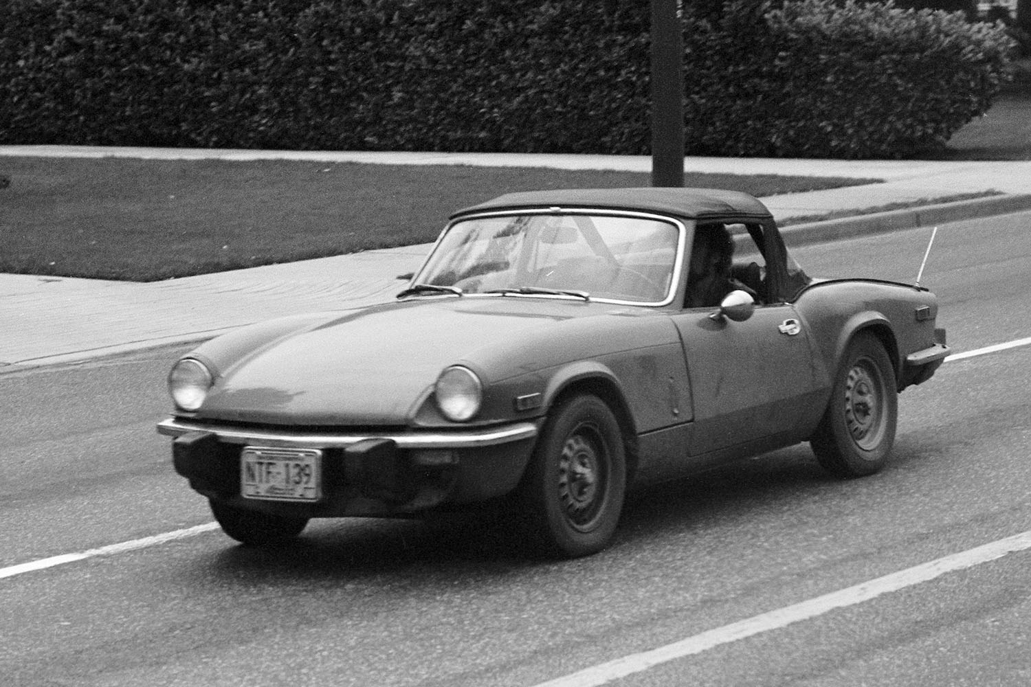 まずはお決まりのブリテッシュ・スポ―ツから。元気よく走ってきたトライアンフ・スピットファイア。大きなバンパーガードが付いた最後期の1500だと思われます。使い込んだ感じがいいですね。