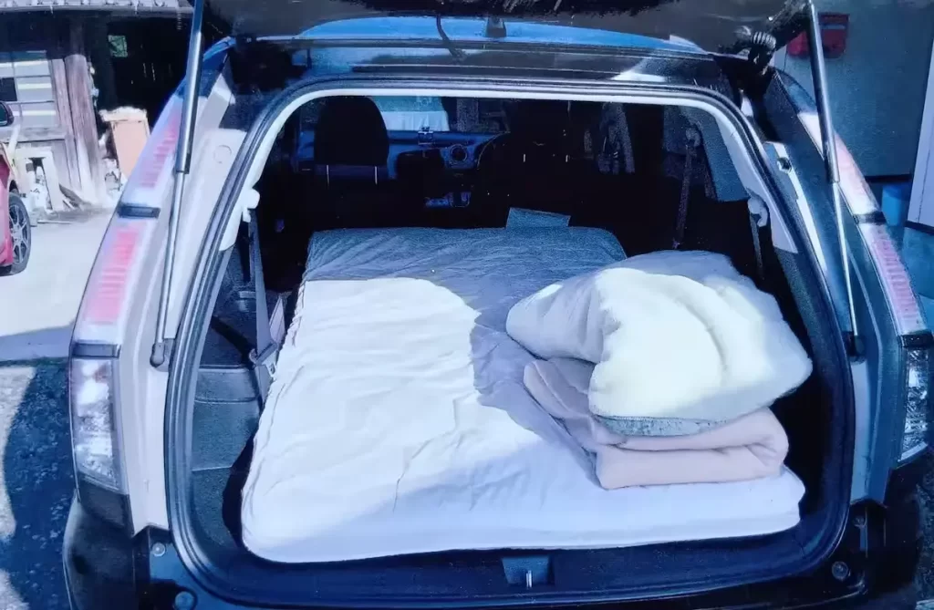 熊本地震発生後に後藤久徳さんが車中泊をしていたときの車内(本人提供)