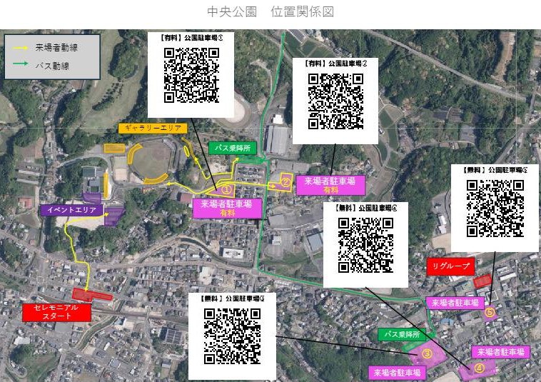 多久市グリーンパーク駐車場ならびに、臨時の駐車場(以下マップ画像を参照ください。)