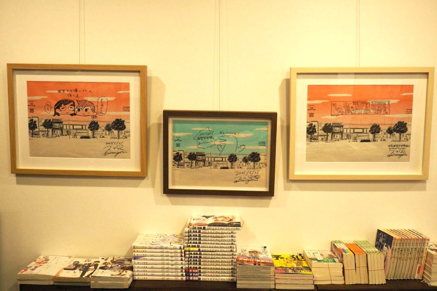 本棚には2025年のオープン記念で原画展を行った松本英子氏をはじめ、さまざまな漫画家から寄せられた色紙も見ることができる。お店でプッシュする新刊の発売時には、新たな色紙が増えるかもしれない。