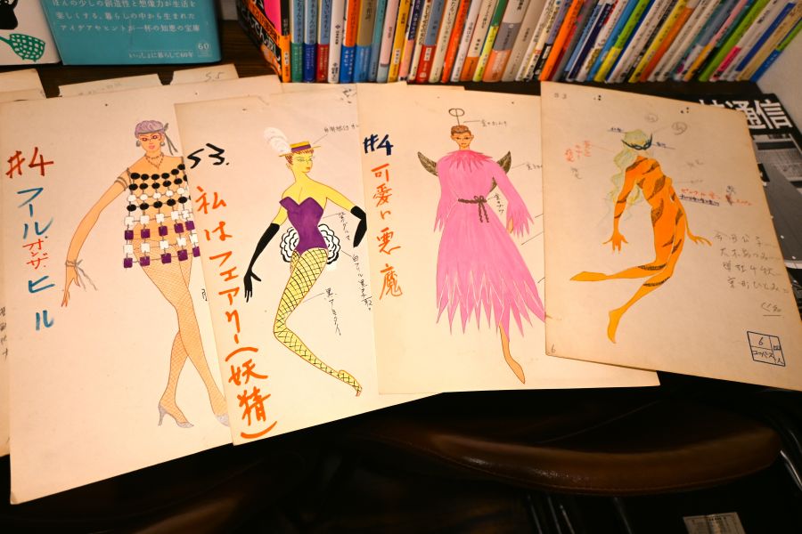 BMCメンバーの持参した「味園ユニバース」の貴重な資料にも参加者たちは興味津々。こちらはショーのための衣装のデザイン画。某歌劇団のスタッフが関わっていたという説もあるんだとか「本屋 亜笠不文律」