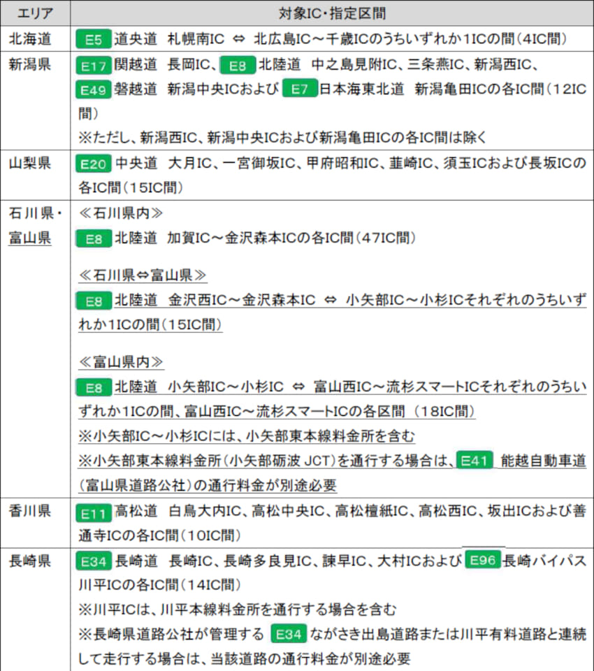 国土交通省とNEXCO3社は、全国6道県(北海道、新潟県、石川県、山梨県、香川県、長崎県)の高速道路で実施している「通勤パス」の社会実験を4月1日~2027年3月31日に実施する。NEXCO各社の公式サイトで申込を受け付けている。