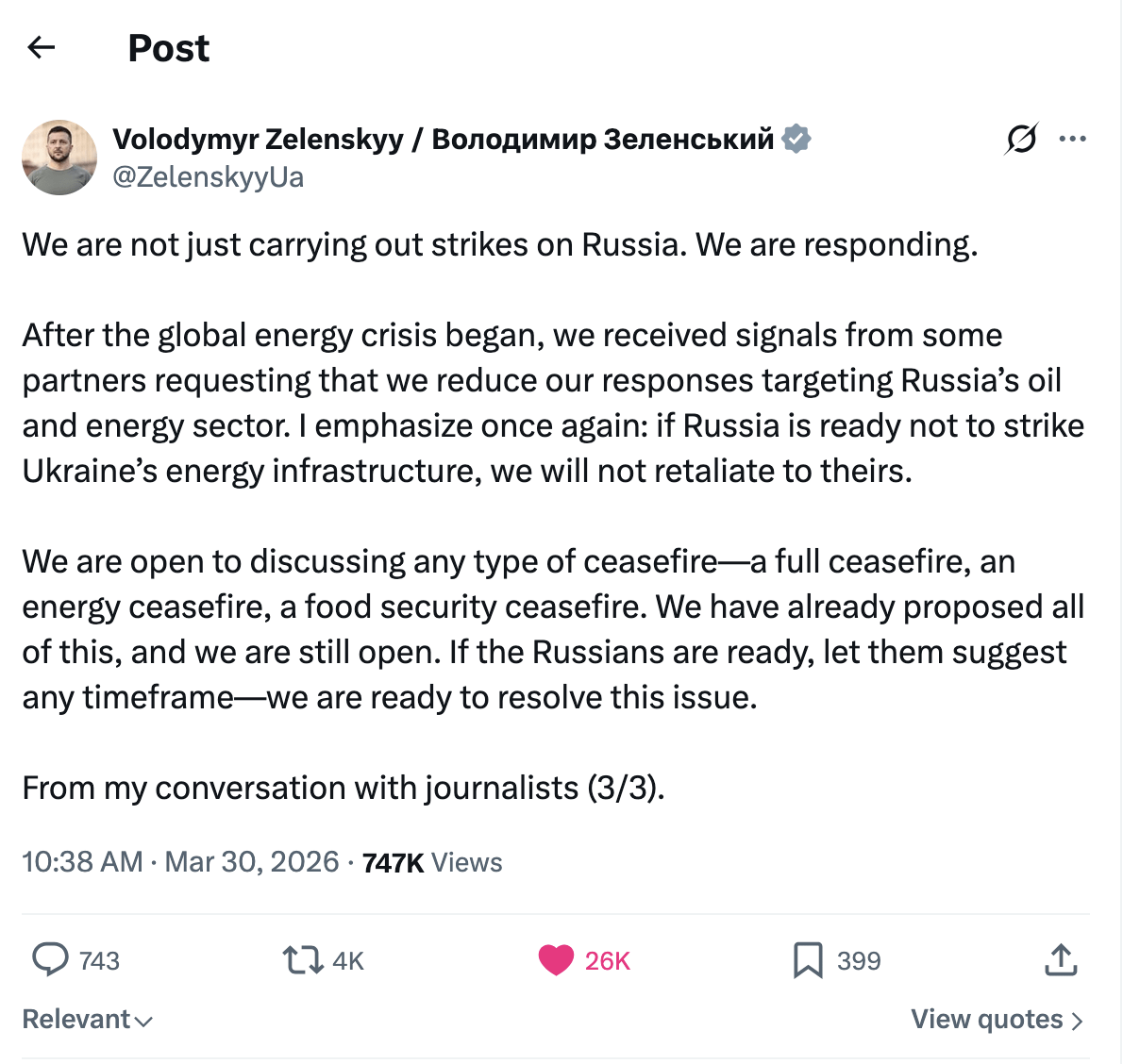 ロシアは、イラン戦争を完璧な隠れ蓑として、米国による対自国の石油制裁を解除するために、トランプ特使(ウィトコフ&クシュナー)とのマイアミ「和平」会談を利用した。現在、米国はウクライナに対し、ロシアの石油貯蔵所への攻撃をやめるよう要求している。米国はロシアとの戦争と戦っており、常にウクライナに降伏を促している。 Ukraine