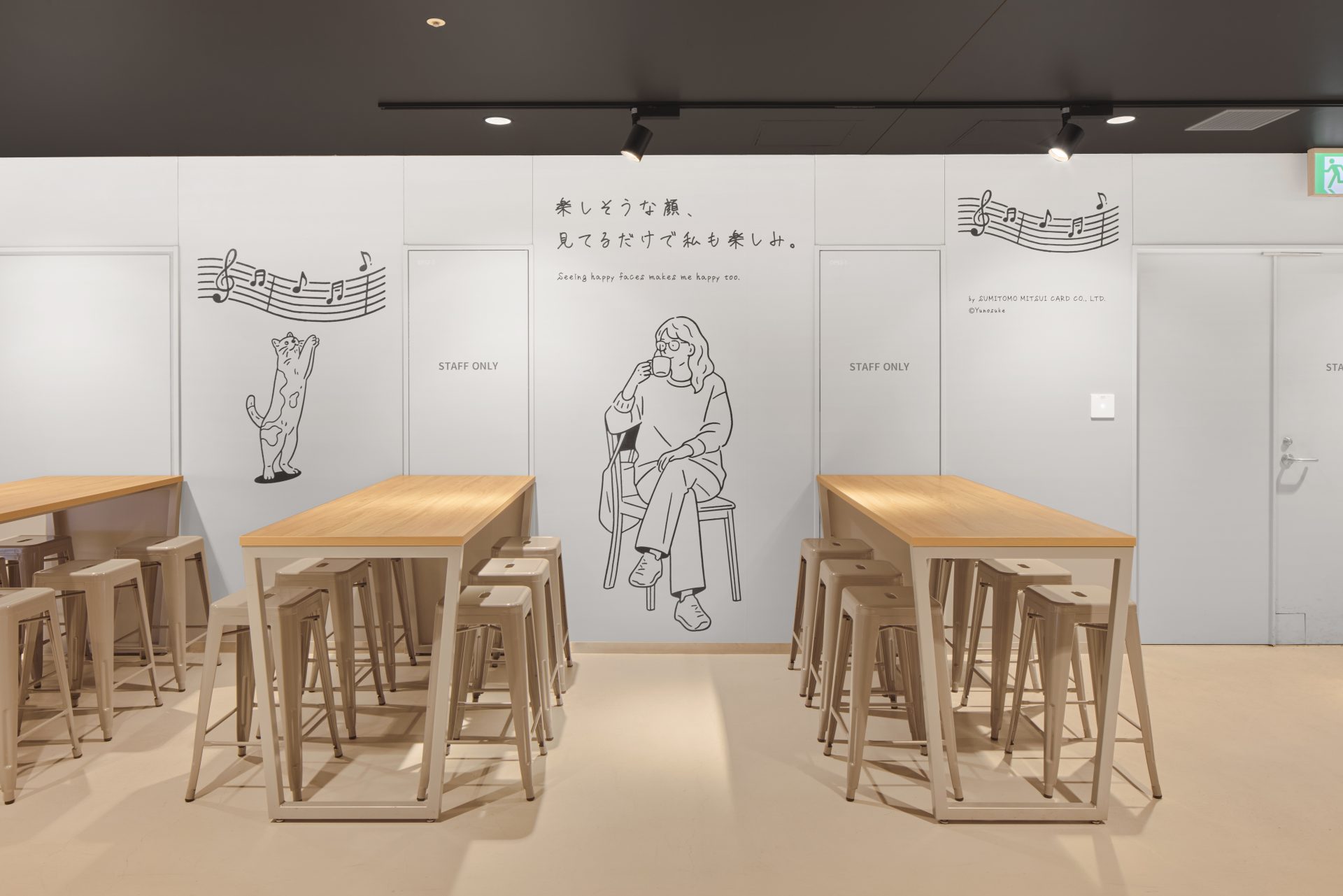 ■「FOOD HALL Sponsored by 三井住友カード」では、イラストレーターのYunosukeさんによる壁面デザインをお楽しみいただけます