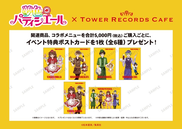 『夢色パティシエール』 × TOWER RECORDS CAFE のコラボカフェ予約チケットは、一般発売開始日時よりチケットぴあにて先着販売いたします。