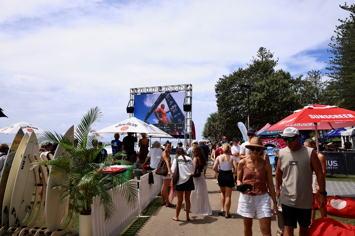 2年前にバーレーヘッズで開催されてから新しいサーフィンイベントの形として世界に衝撃をもたらしたABB。今年もバーレーヘッズの丘全体に巨大スクリーンをはじめ、どの場所でもイベントを楽しめるような大規模のセットアップが施され、会場には多くの人が詰めかけていました。