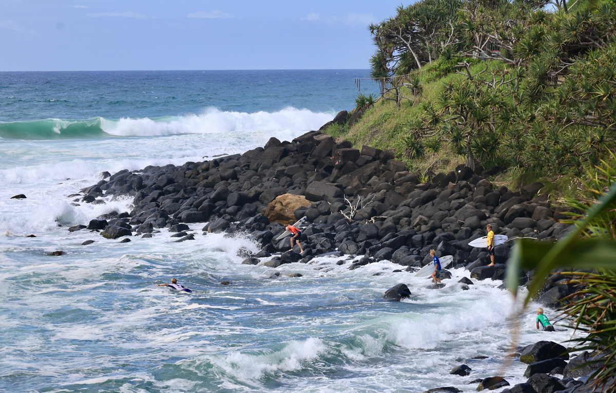極上のライトハンドブレイクを見せるスーパーバンク。スナッパーロックスからキラポイントまで約2kmに渡って質の高い波が割れています。