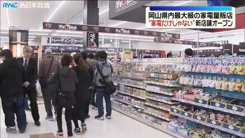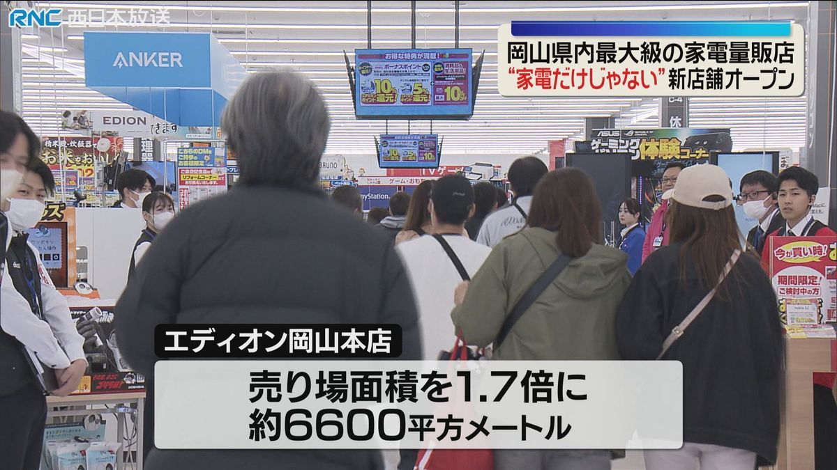 家電量販店がひしめく岡山市に今日(3日)新しい店舗がオープンしました。売り場面積は岡山県最大級、家電「だけじゃない」ラインナップで、独自の集客を図ります。