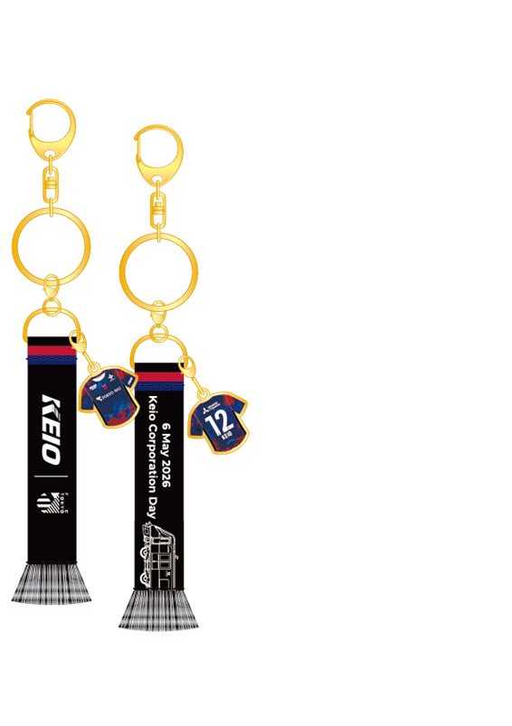 アクリルスタンド、マフラーキーホルダー、駅名キーホルダーなど京王電鉄とFC東京のコラボグッズを販売します。また、1会計あたり2,500円以上(税込み)ご購入された方先着