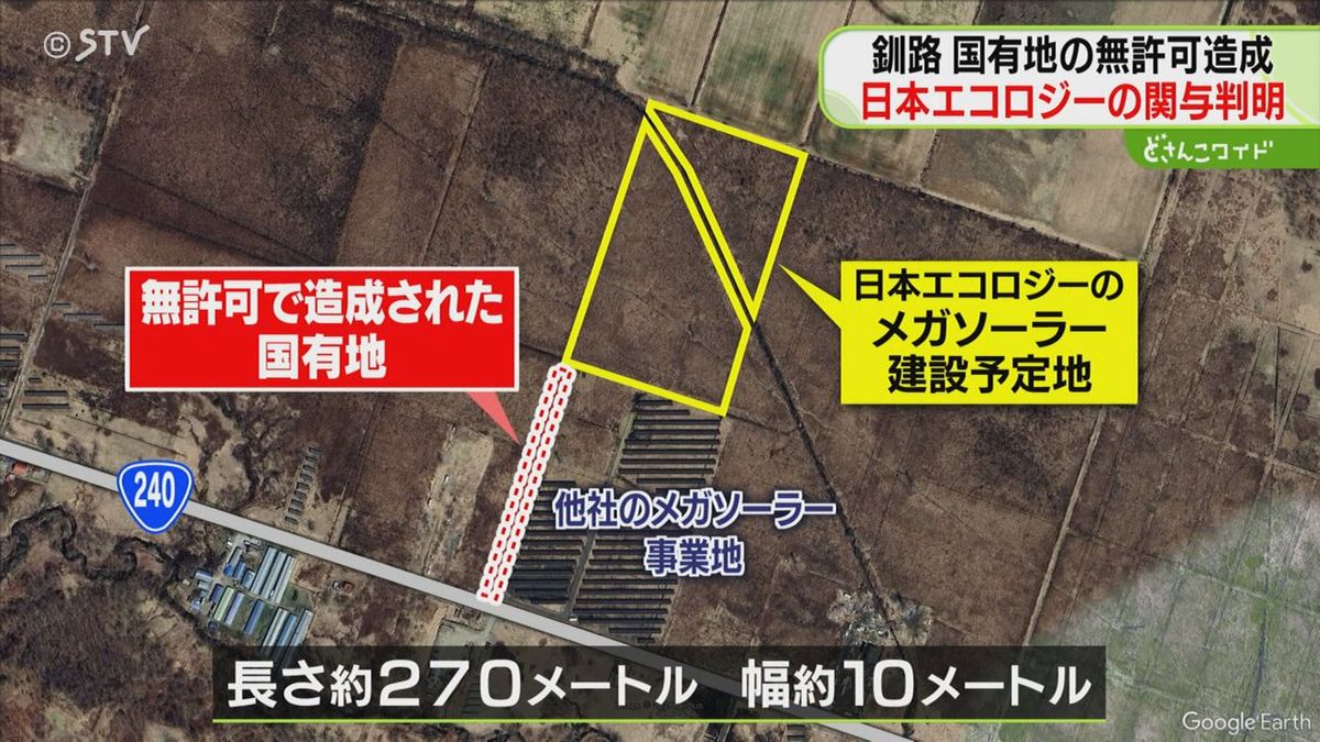 釧路市の国有地に許可なく道路のようなものがつくられていたことについて、北海道財務局は、付近でメガソーラーの建設を計画している事業者が関与していたことを明らかにしました。