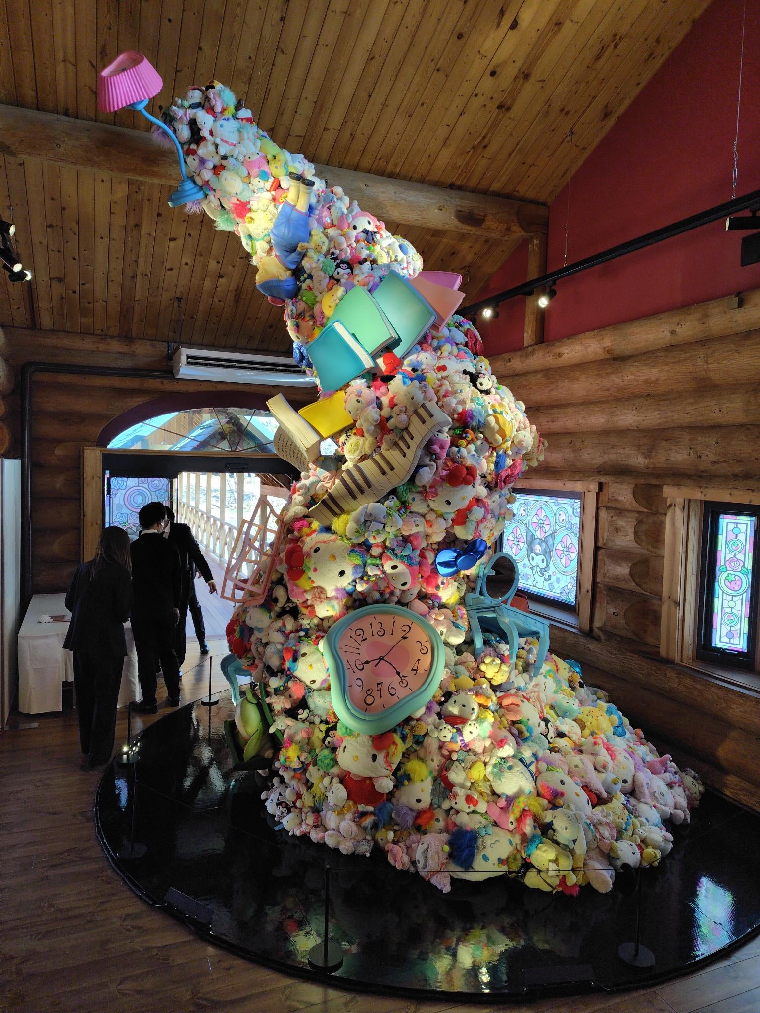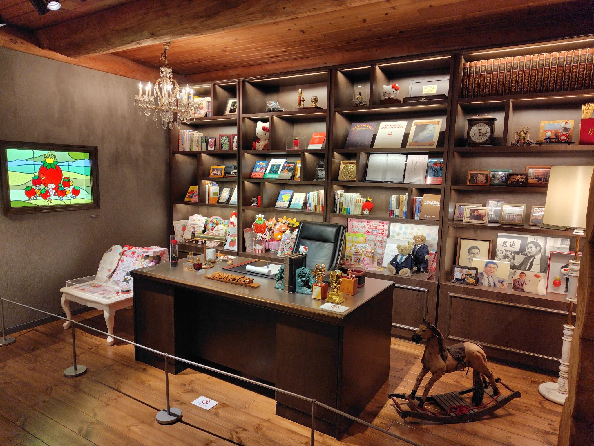 ミュージアムには「サンリオ歴史館」と「辻󠄀信太郎記念館」という二つのログハウスがあります。目を引くのはサンリオの歴史を飾ってきた象徴的な展示。サンリオ初の直営店「新宿ギフトゲート」に展示されていたハローキティやピアノ、日本国内のライセンスを得て事業を成長させたスヌーピー、現在展開中の「サンリオ展 ニッポンのカワイイ文化60年史」のシンボルアート作品など、同社を象徴する展示品が随所に配置されていました。
