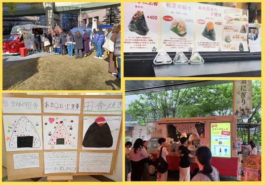 和歌山県田辺市上芳養町の小学生と共同で、地元名産の梅干しを使ったおにぎりを開発して協賛したイベント「かみはやキャラバン」の出店、地域の食材(海苔・味噌・キクラゲ・枝豆etc)の生産者・販売者とコラボレーションしたおにぎりの販売を行ったり、積極的に地域創生やフードロス削減を目指して活動しています。