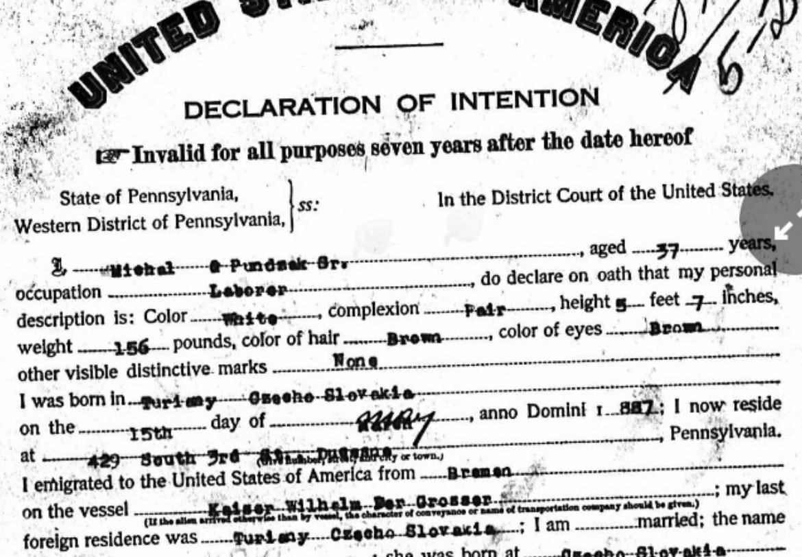 私は自分の祖先を調べることに熱心で、実際に 1903 年にアメリカに来た私の曾祖父の文書を見つけました。文書は読みにくいですが、どうやら彼がチェコソルバキアのトゥリアニで生まれたと書かれているようです。実際の綴りは Tuřany だと思います。実は私も最初は、チェコスロバキアとチェコ共和国が分離したときに、この町はスロバキアに落ちたのかと思っていました。これは正しいのでしょうか、それとも実際にはチェコの一部なのでしょうか?