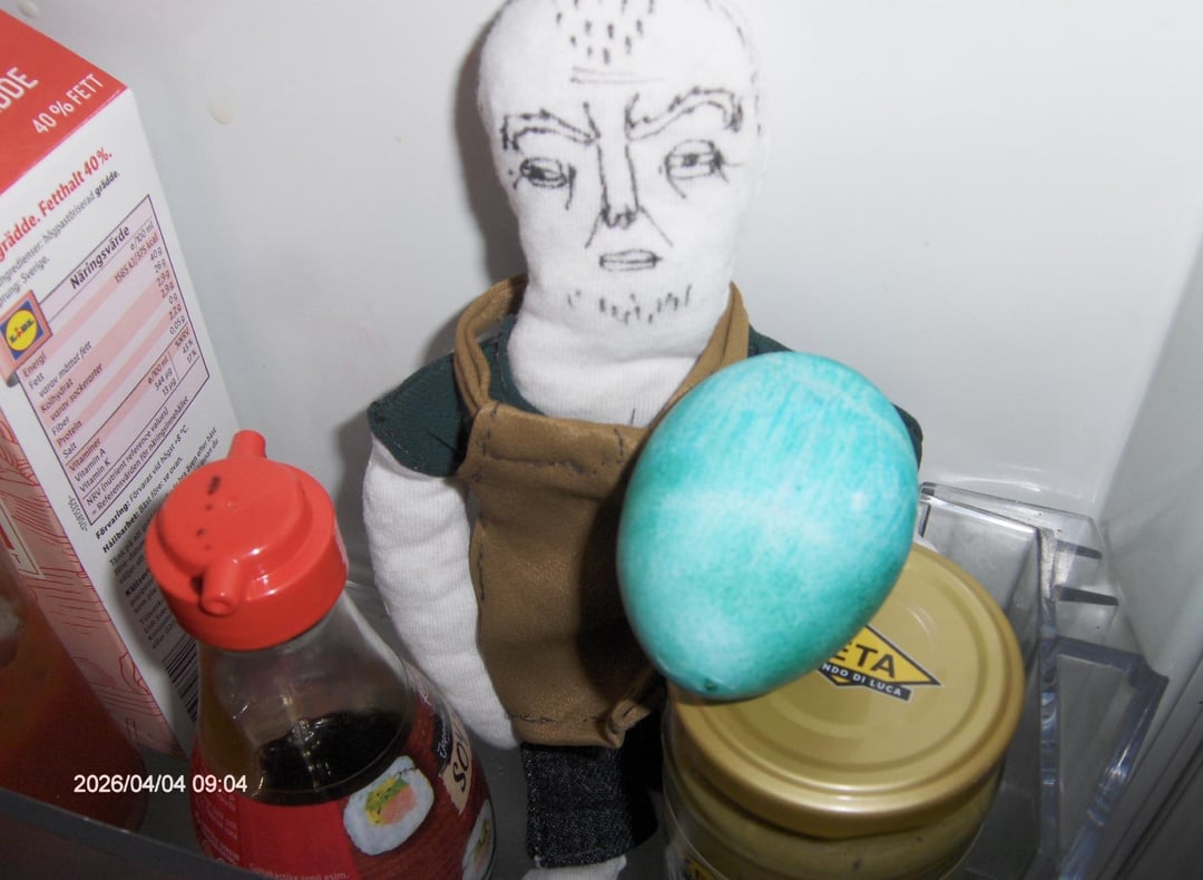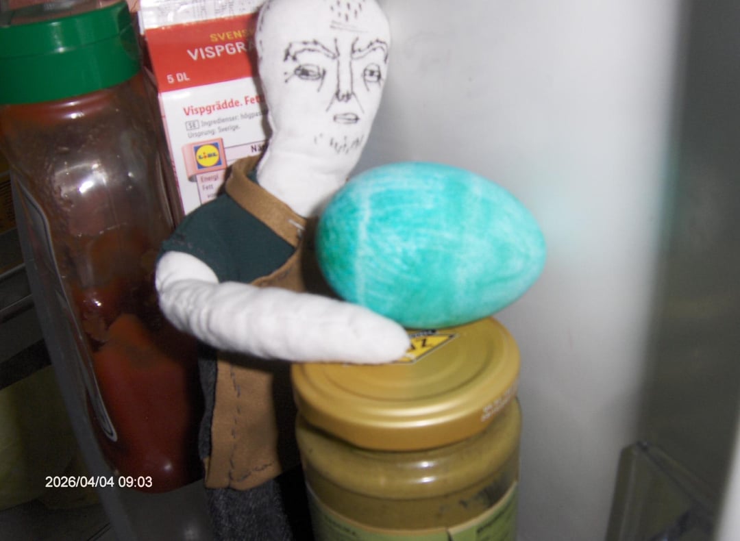 イースタークラフト: 緑色の卵を塗って、Foodgeek 人形を縫いました! 🙂