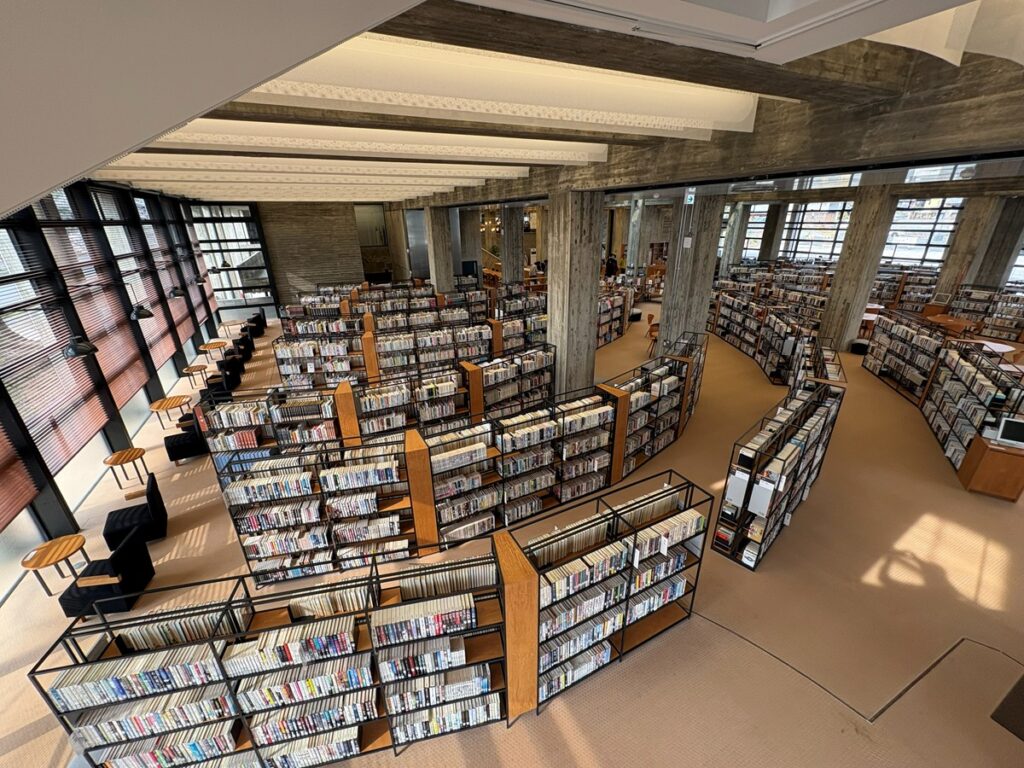 左は、いつ解体工事が始まるかわからない旧香川県立体育館。右はすでにこの記事で報じた「SAKAKURA BASE」である。SAKAKURA BASEは、坂倉準三が設計した旧上野市庁舎(伊賀市旧本庁舎)をマル・アーキテクチャ(MARU。architecture)が改修して「図書館+ホテル」に再生したプロジェクトだ。ホテルが2025年7月21日にオープンしたのに続いて、伊賀市中央図書館が2026年4月1日にオープンした。