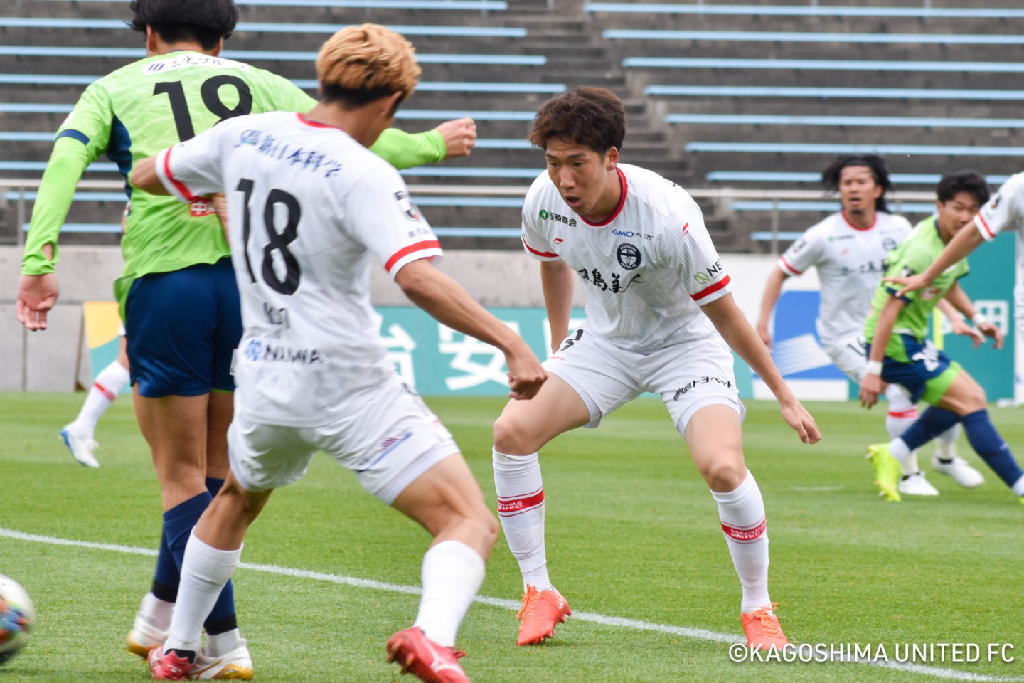 それでも鹿児島はこれまでと同様に、前線の選手が労を惜しまず、滋賀の選手が保持しているボールを奪いにかかる。