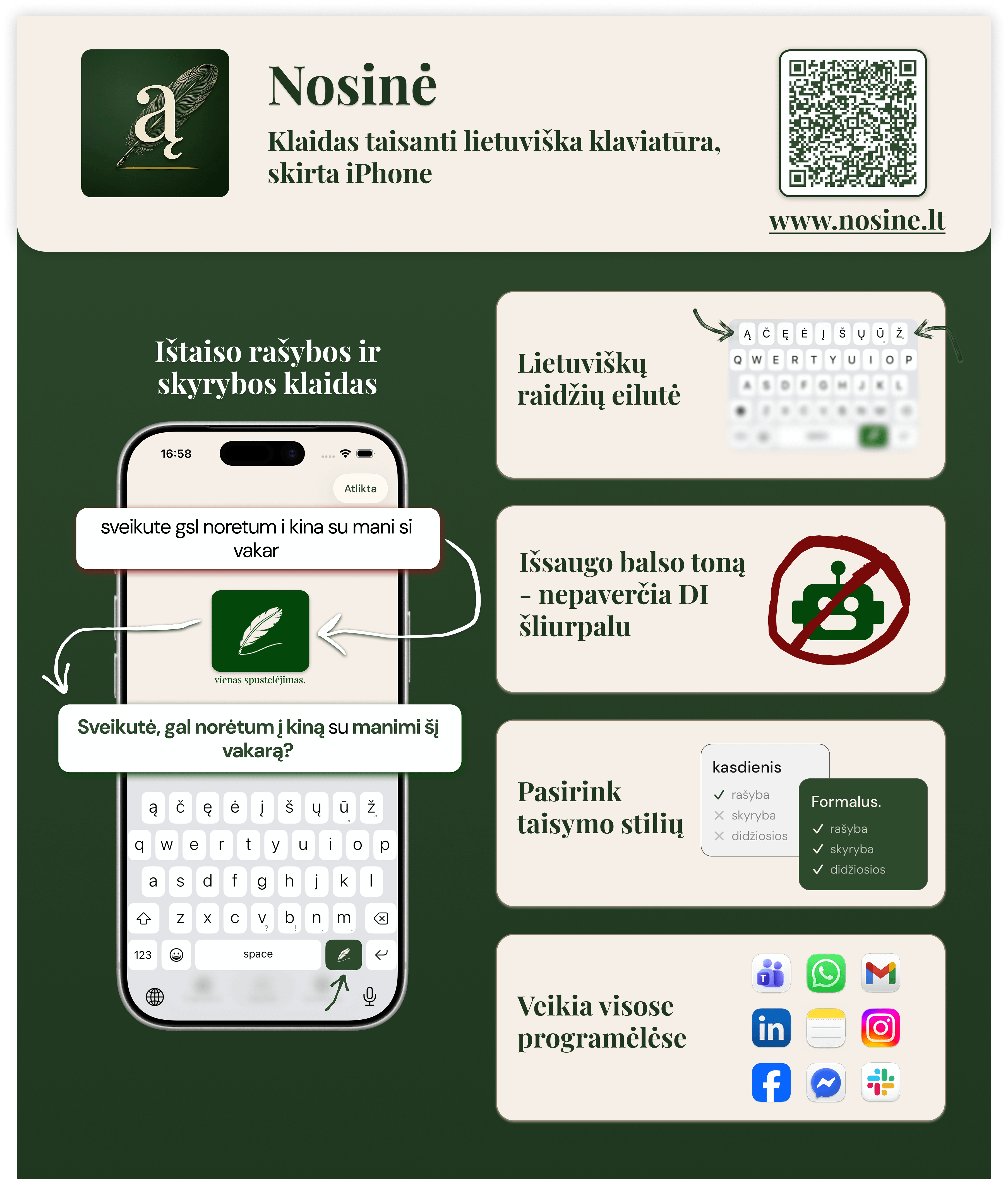 こんにちは、AI エラー修正機能が組み込まれた私独自のリトアニア語キーボード「Nosine」を共有したいと思います。