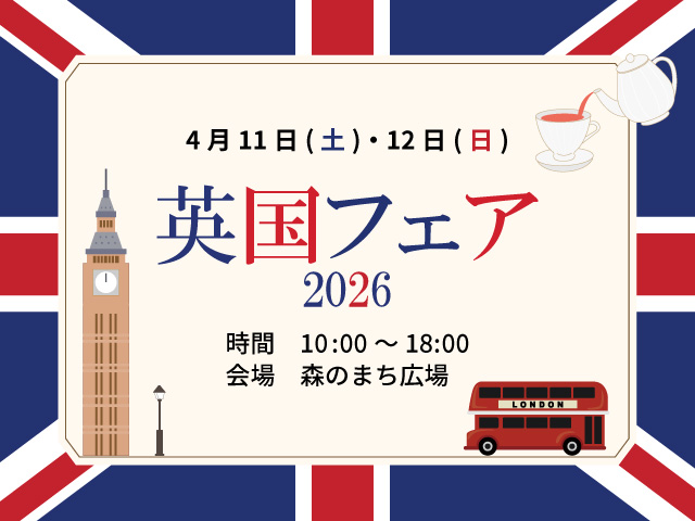 「英国フェア」のメイン会場である森のまち広場だけでなく、お隣のFLAPSでも紅茶講座やお子様にはイギリス発のアニメでおなじみ『チャギントン』のBIGトレインも登場するので、家族みんなで1日中楽しめますね。
