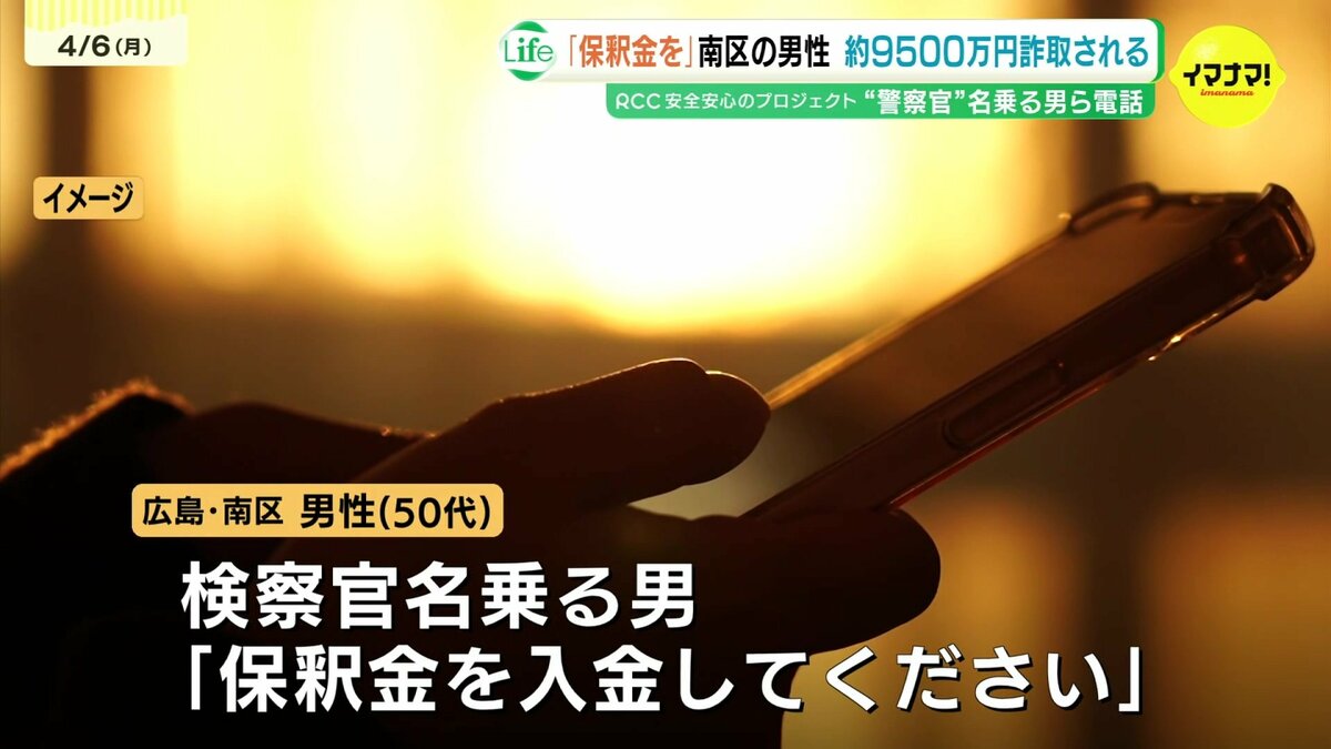 広島県警は6日、警察官や検察官を名乗る男などから「保釈金を入金して」「捜査が終わったら返します」などと言われ、現金およそ9500万円を騙し取られる特殊詐欺事件が発生したと発表しました。