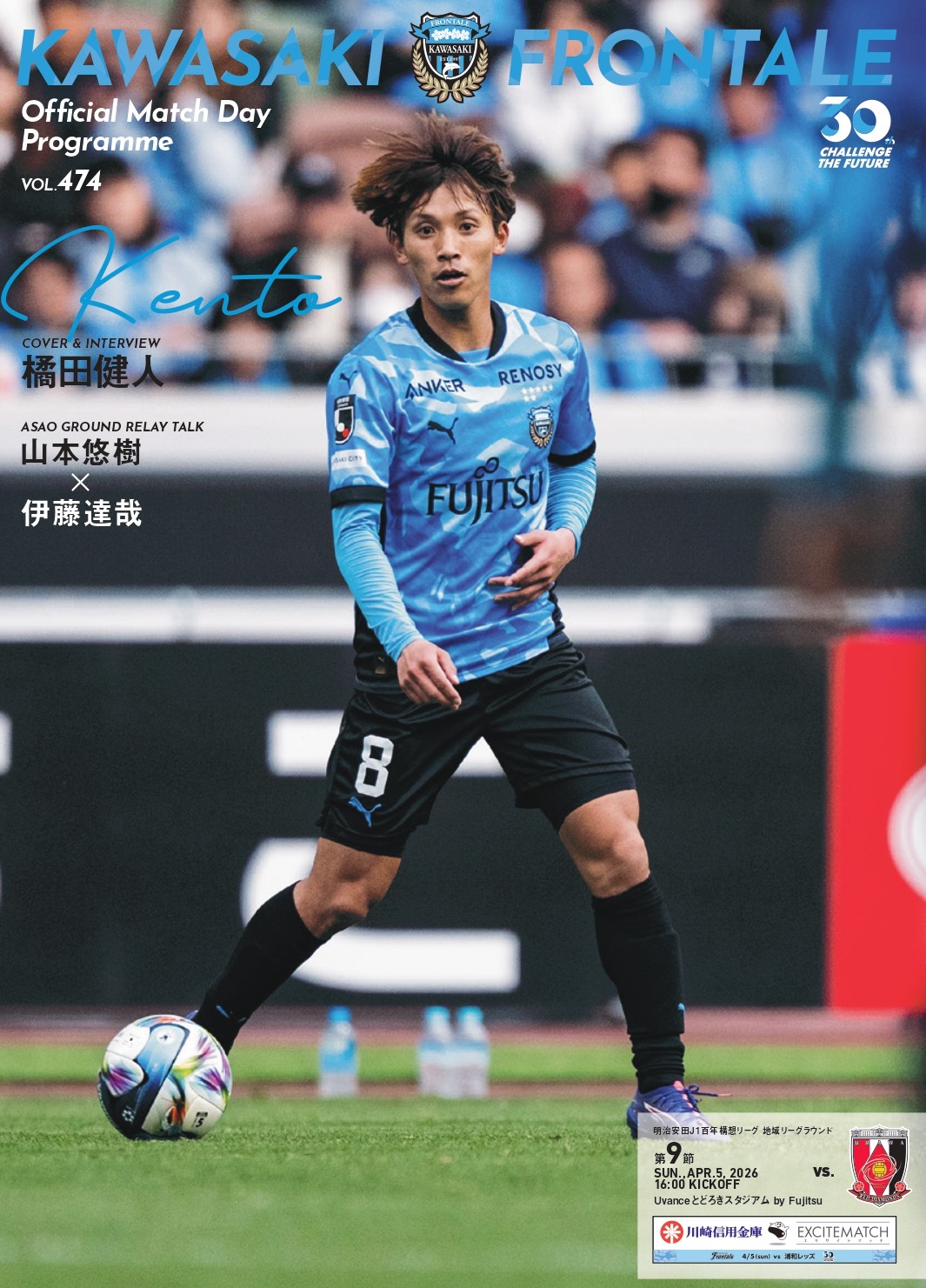 表紙&インタビューに橘田健人選手、麻生グラウンドリレートークは伊藤達哉選手×山本悠樹選手(後編)、クラブ創設30周年特別企画「フロンターレの歴史を振り返る」フロンターレ変遷期 2001年~J1復帰に向けて~、ちょっとふかぼり選手のQ&A「林駿佑編」お送りします。