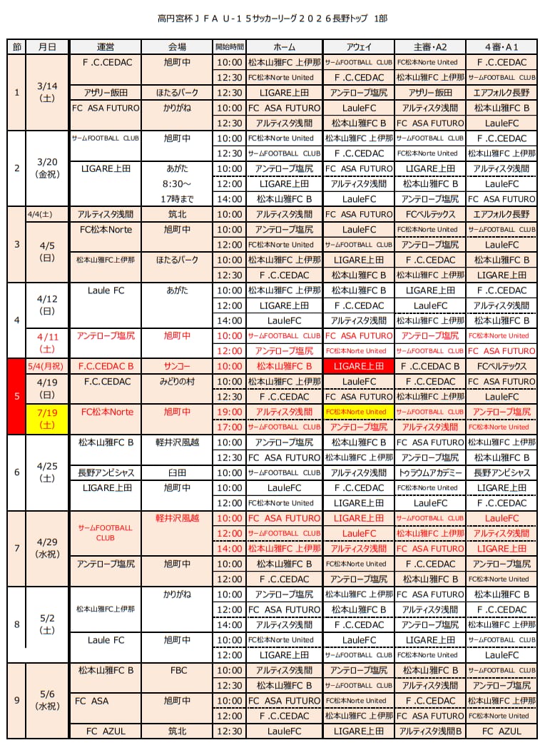 高円宮杯JFA U-15サッカーリーグ2026長野 TOPリーグ