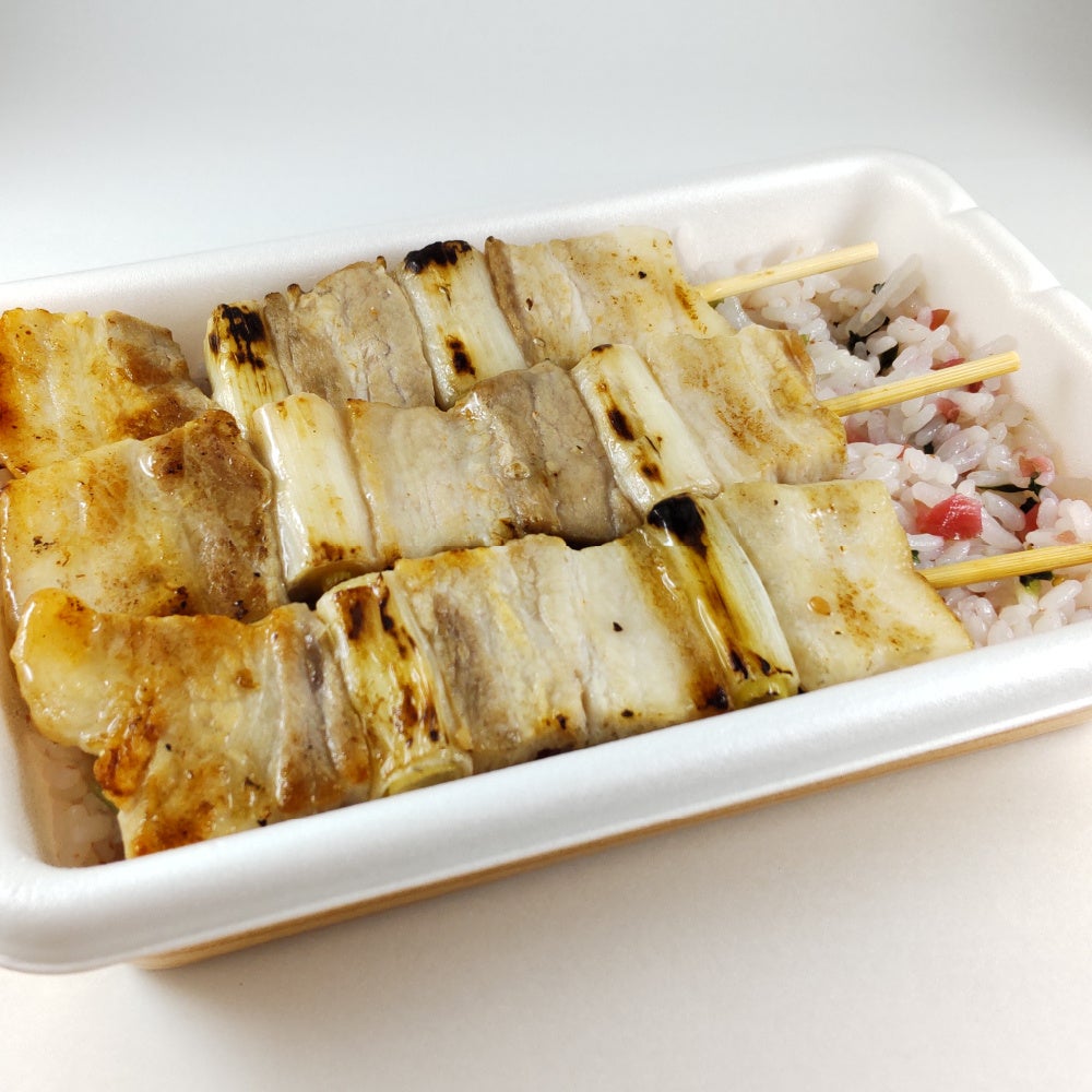 函館で期間限定で販売しているやきとり弁当です。梅と野沢菜の風味が春を感じる1品。豚精肉(塩)との相性が抜群で梅野沢菜ご飯の味を楽しめます。