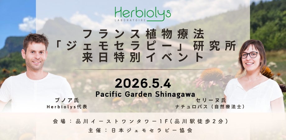 一般社団法人 日本ジェモセラピー協会(所在地:東京都目黒区自由が丘1-24-1、代表:盛山葉子)は、2026年5月、フランス本国で“最高品質”と評される植物療法ブランド「Herbiolys(エルビオリス)研究所」より、同研究所代表のブノア・アルティクロー氏と、自然療法士のセリーヌ・アルティクロー氏を招聘します。